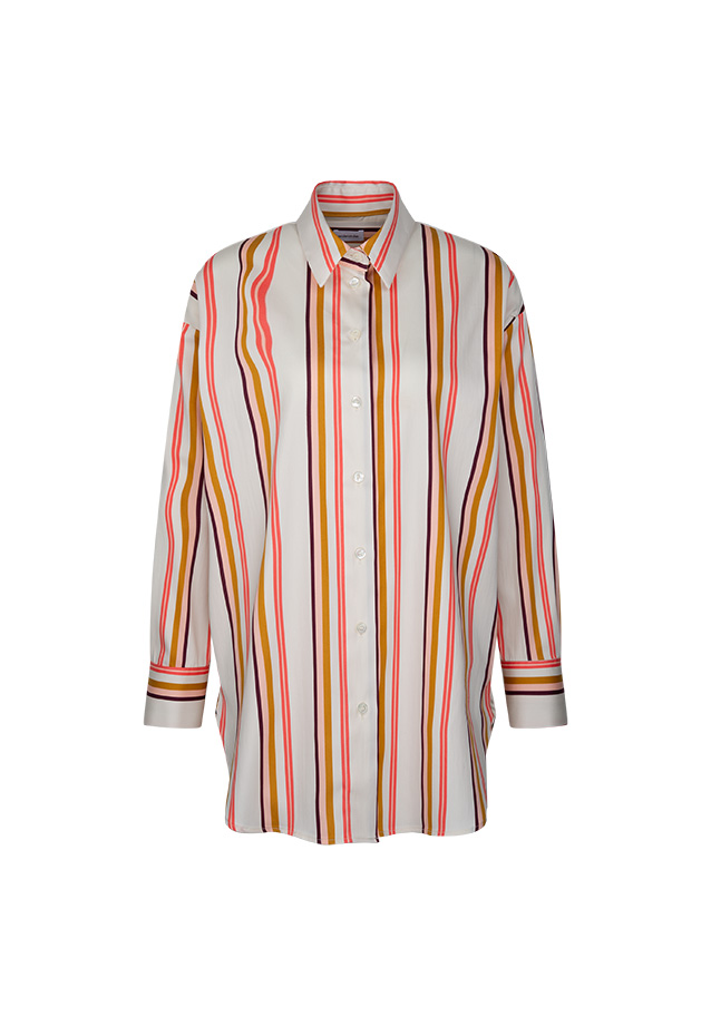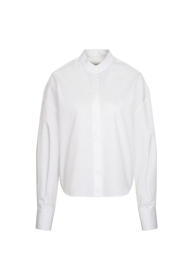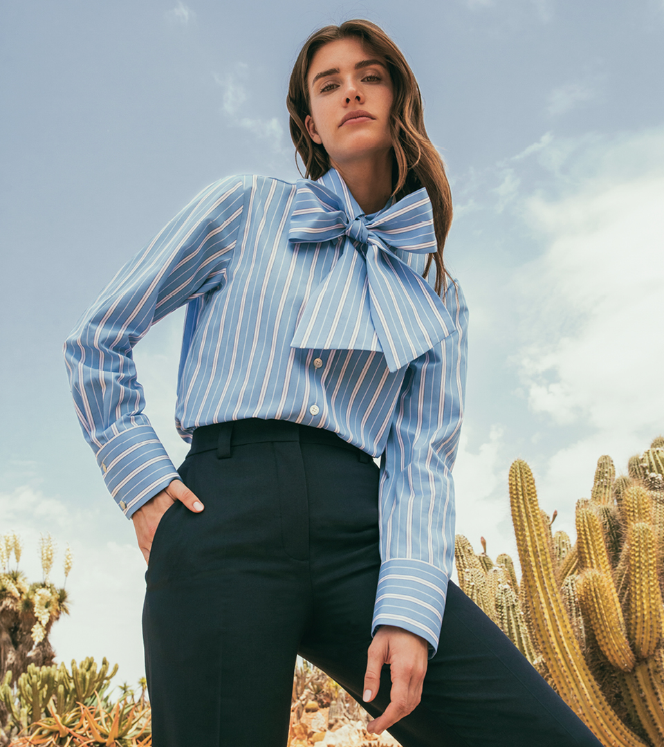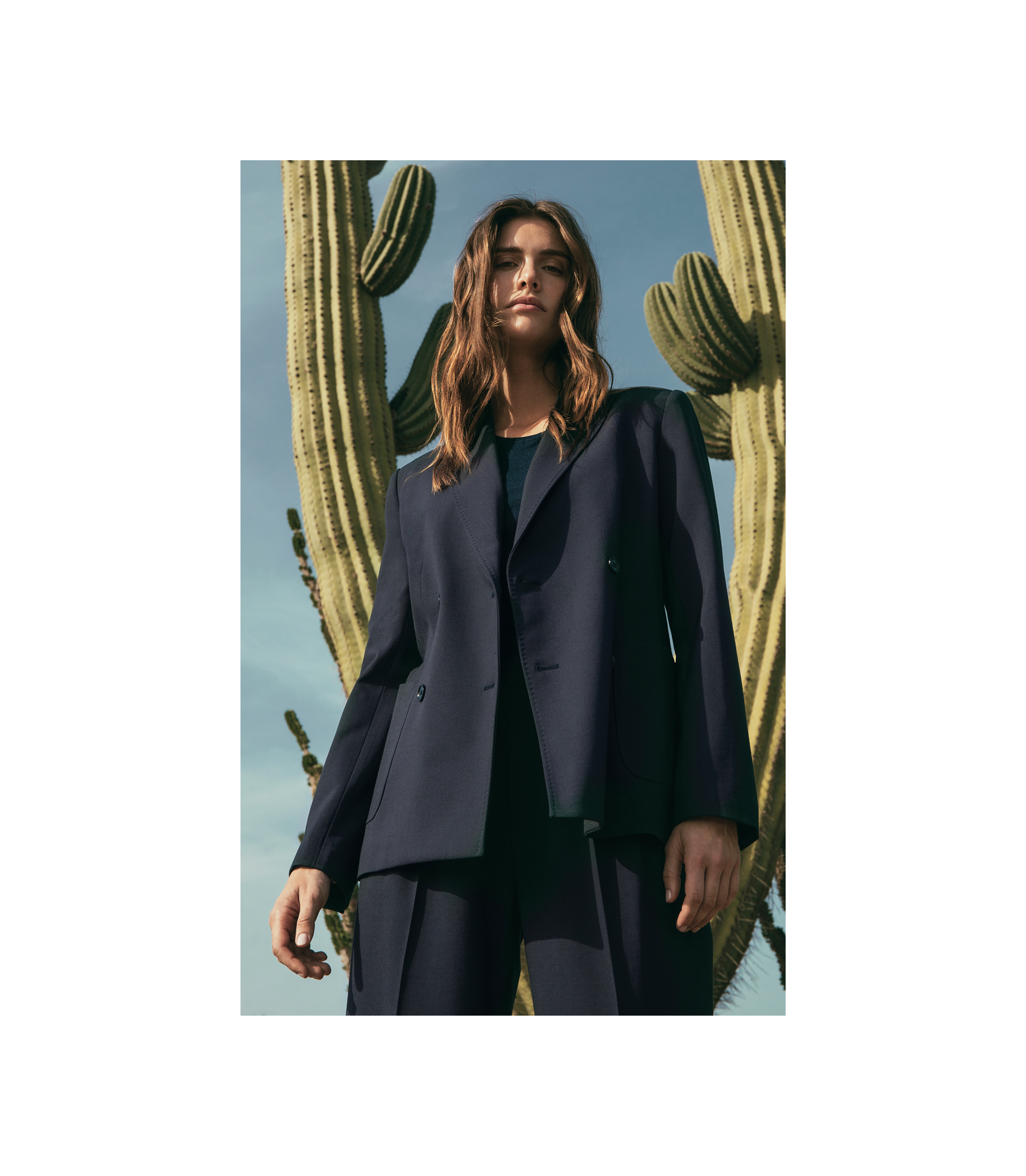 Im Fokus stehen anspruchsvolle, harmonisch in das Kollektionskonzept integrierte Styles. Die Modelle zeigen eine breite Varianz von körpernahen Silhouetten bis zu neuen Oversized Shapes und von modern interpretierter Klassik bis zu dezenter Verspieltheit. Im spannungsreich kuratierten Warenbild treffen matte und glänzende, fließende und stabile, glatte und strukturierte Qualitäten aufeinander. Feine Streifenabläufe und eine breite Uni-Palette kommen auf weich fallenden Fluids, modernen Twills und feinen Poplins optimal zur Geltung. Dreidimensionale Crêpe-Qualitäten, Denims, Bouclés und sommerliche Wollmischungen erweitern das Warenspektrum.