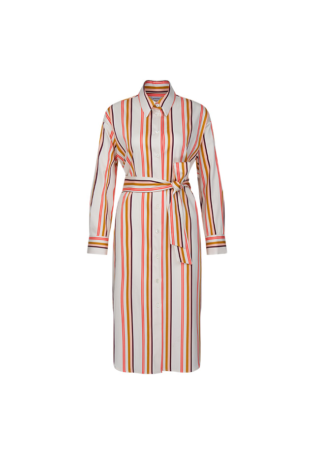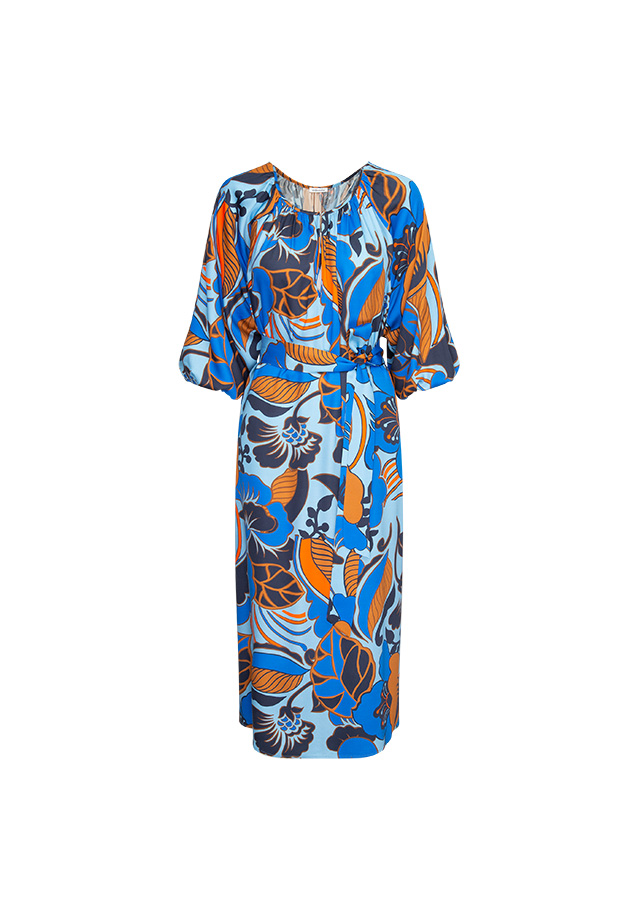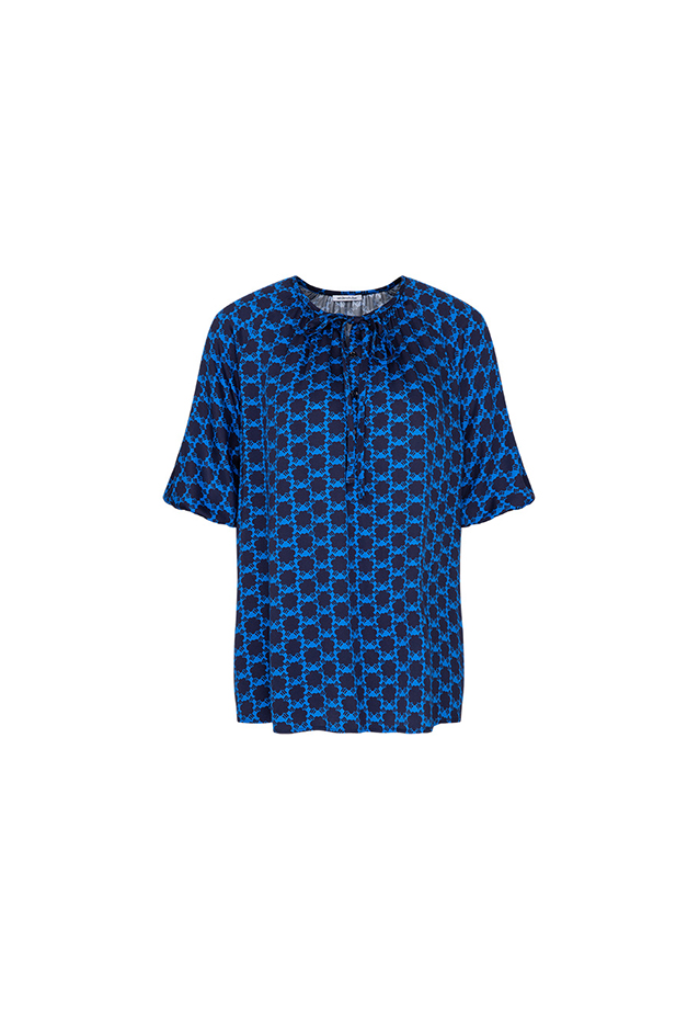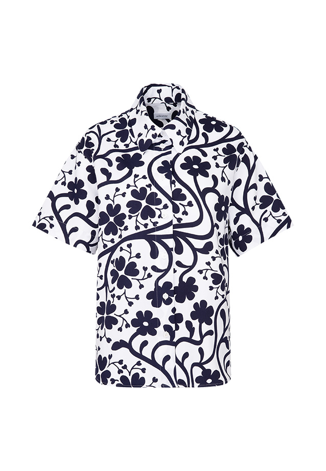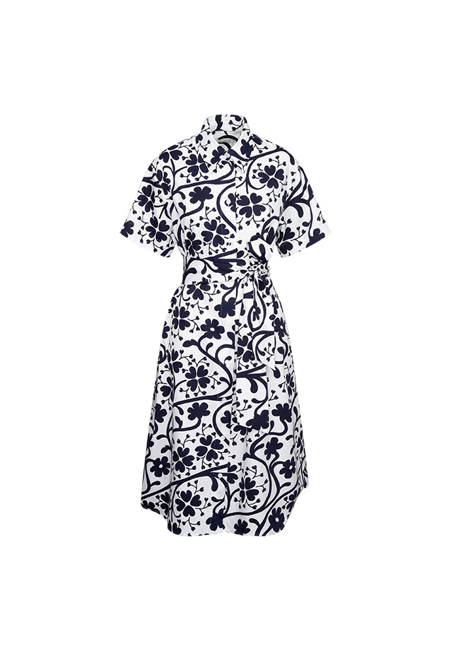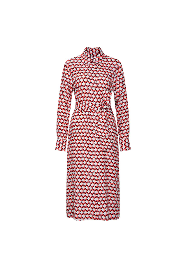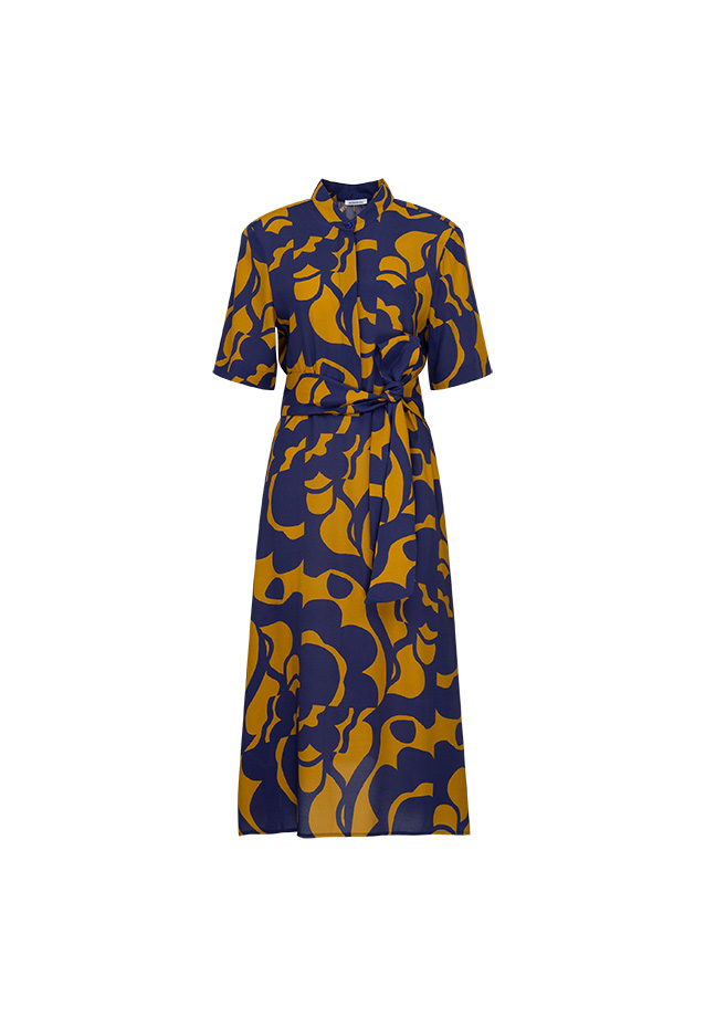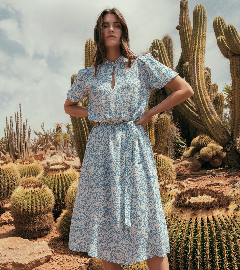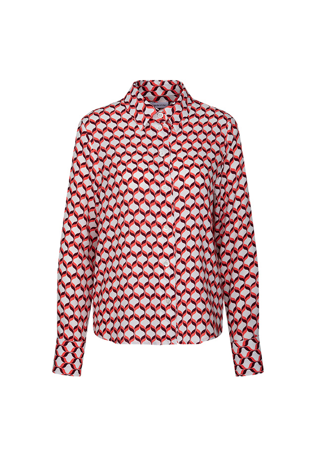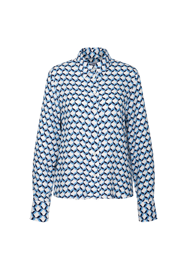 Ausdrucksstarke Druckmotive und neue Kolorits geben der Kollektion ihre individuelle Handschrift. Die Grafiken der neuen Saison arbeiten mit Gegenüberstellungen von reduziert und verspielt, Mikro und Makro, sommerlichen Brights und farblicher Zurückhaltung. Wichtig sind botanische Motive wie Blattstrukturen, verfremdete Blüten oder flächig aufgelöste Ranken. Sie treffen auf neue Streifenbilder, unregelmäßig angeordnete Dots, naiv stilisierte Wolken und Kettenmotive. Dazu kommen opulente Foulardprints und Paisleys. Das Spiel mit unterschiedlichen Stofflichkeiten unterstreicht die grafische Qualität der Druckthemen. Fließende Viskosequalitäten und Satins stehen in Kontrast zu Leinenstrukturen und körnigen Crêpes. Baumwollqualitäten präsentieren sich im Spektrum von dicht gewebten Poplins, und Twillbindungen über feine Cotton/Satins bis zu luftigen Voiles.