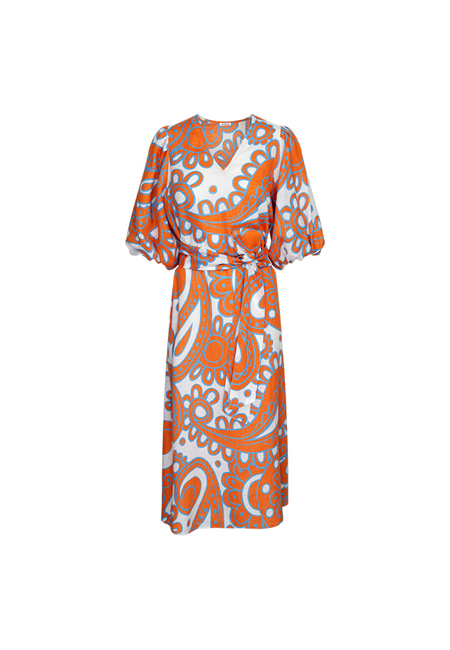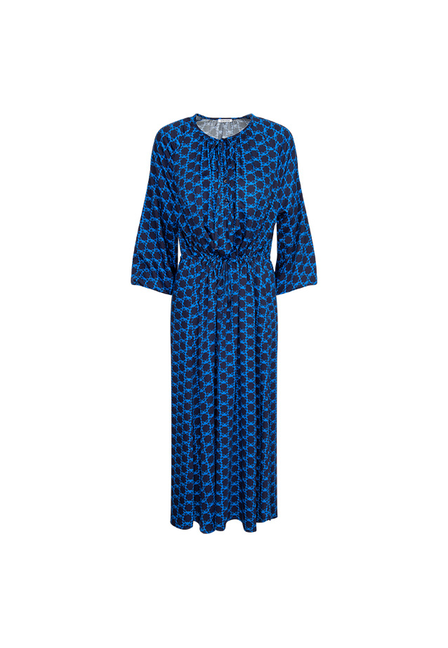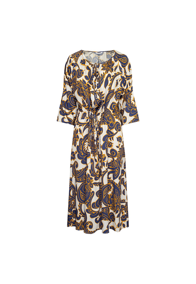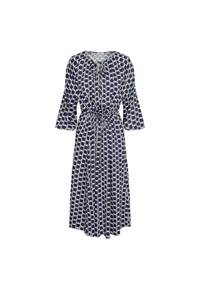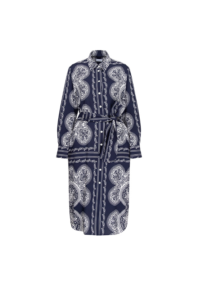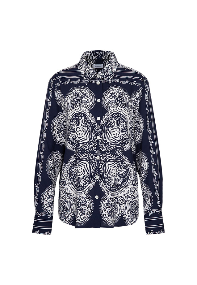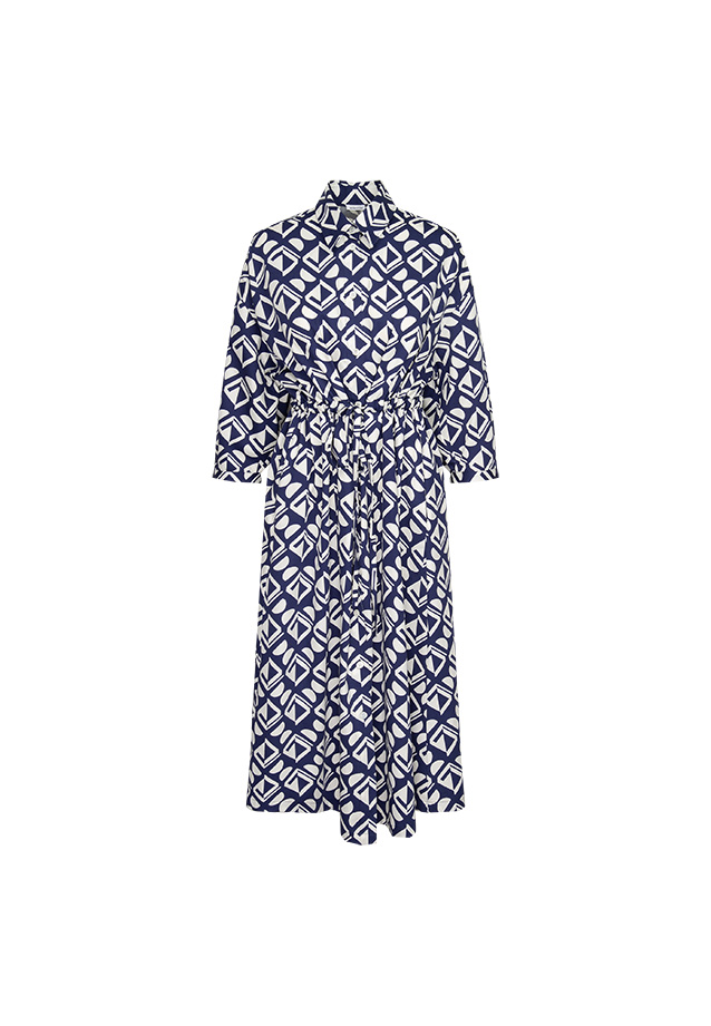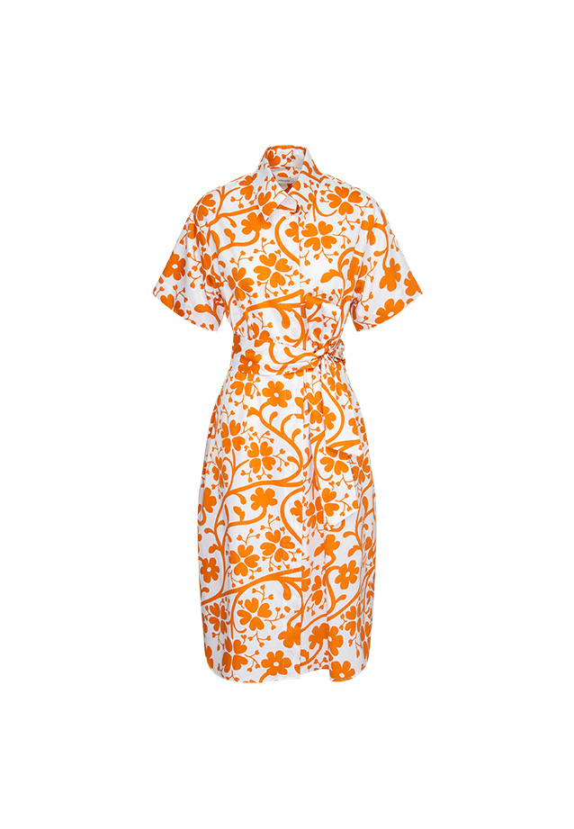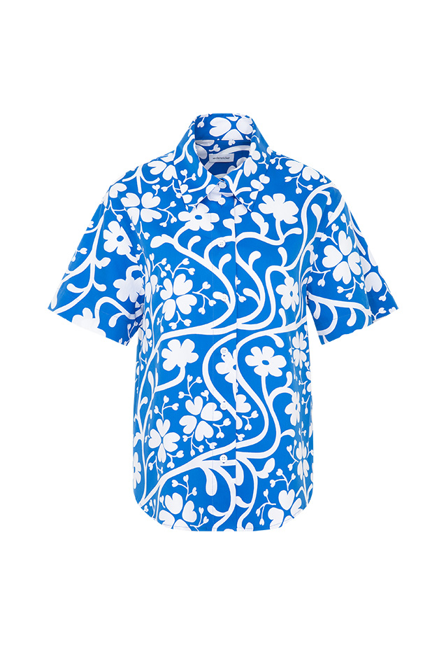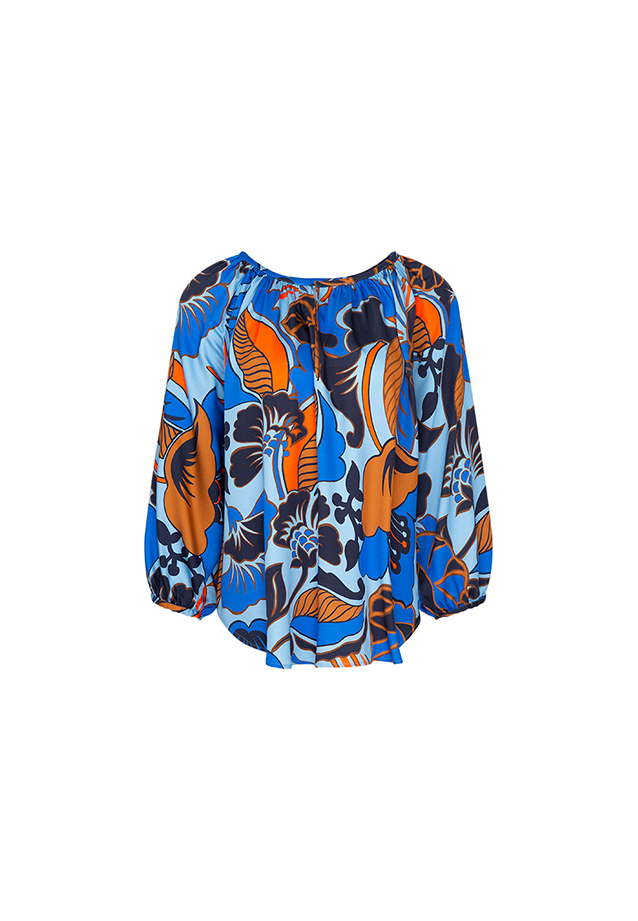Ausdrucksstarke Druckmotive und neue Kolorits geben der Kollektion ihre individuelle Handschrift. Die Grafiken der neuen Saison arbeiten mit Gegenüberstellungen von reduziert und verspielt, Mikro und Makro, sommerlichen Brights und farblicher Zurückhaltung. Wichtig sind botanische Motive wie Blattstrukturen, verfremdete Blüten oder flächig aufgelöste Ranken. Sie treffen auf neue Streifenbilder, unregelmäßig angeordnete Dots, naiv stilisierte Wolken und Kettenmotive. Dazu kommen opulente Foulardprints und Paisleys. Das Spiel mit unterschiedlichen Stofflichkeiten unterstreicht die grafische Qualität der Druckthemen. Fließende Viskosequalitäten und Satins stehen in Kontrast zu Leinenstrukturen und körnigen Crêpes. Baumwollqualitäten präsentieren sich im Spektrum von dicht gewebten Poplins, und Twillbindungen über feine Cotton/Satins bis zu luftigen Voiles.