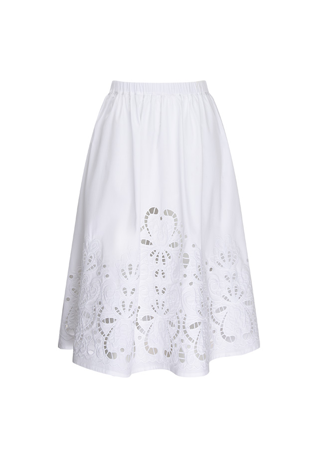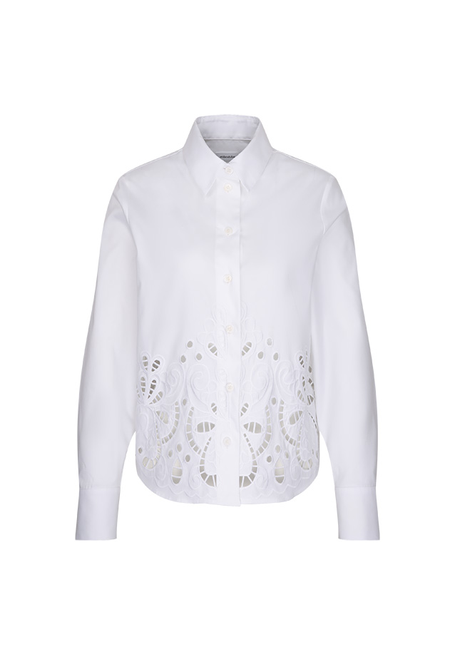 Dekorative Stickereien, ob grafisch oder verspielt, bilden den Schwerpunkt in diesem Programm. Styles mit luftigem Volumen, weit schwingende Kleider, Röcke und betonte Taillierungen stehen neben reduziert-minimalistischen Modellvarianten. Voiles, Cotton- und Leinenqualitäten bilden das Fundament der dekorativen Aussage.