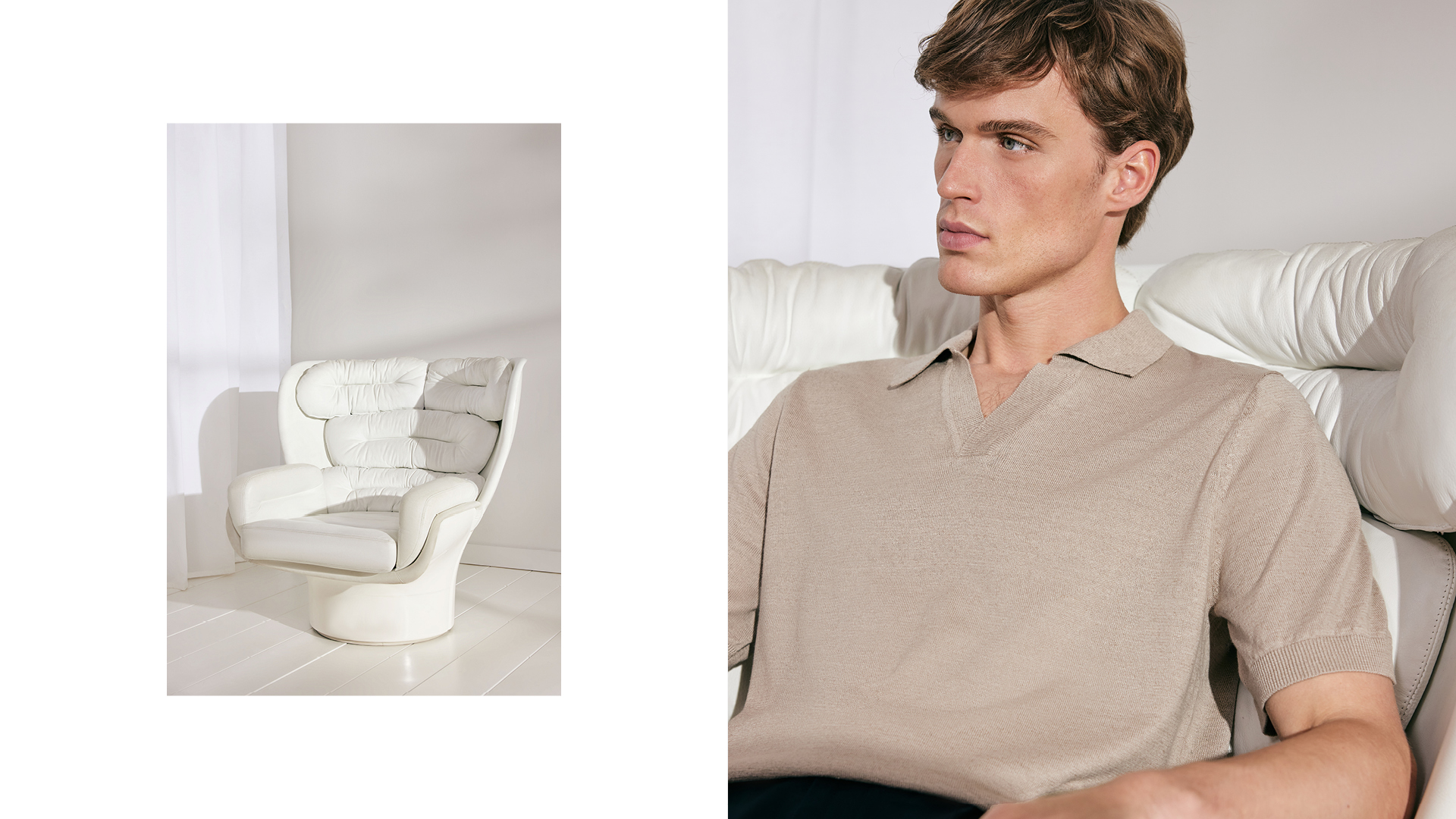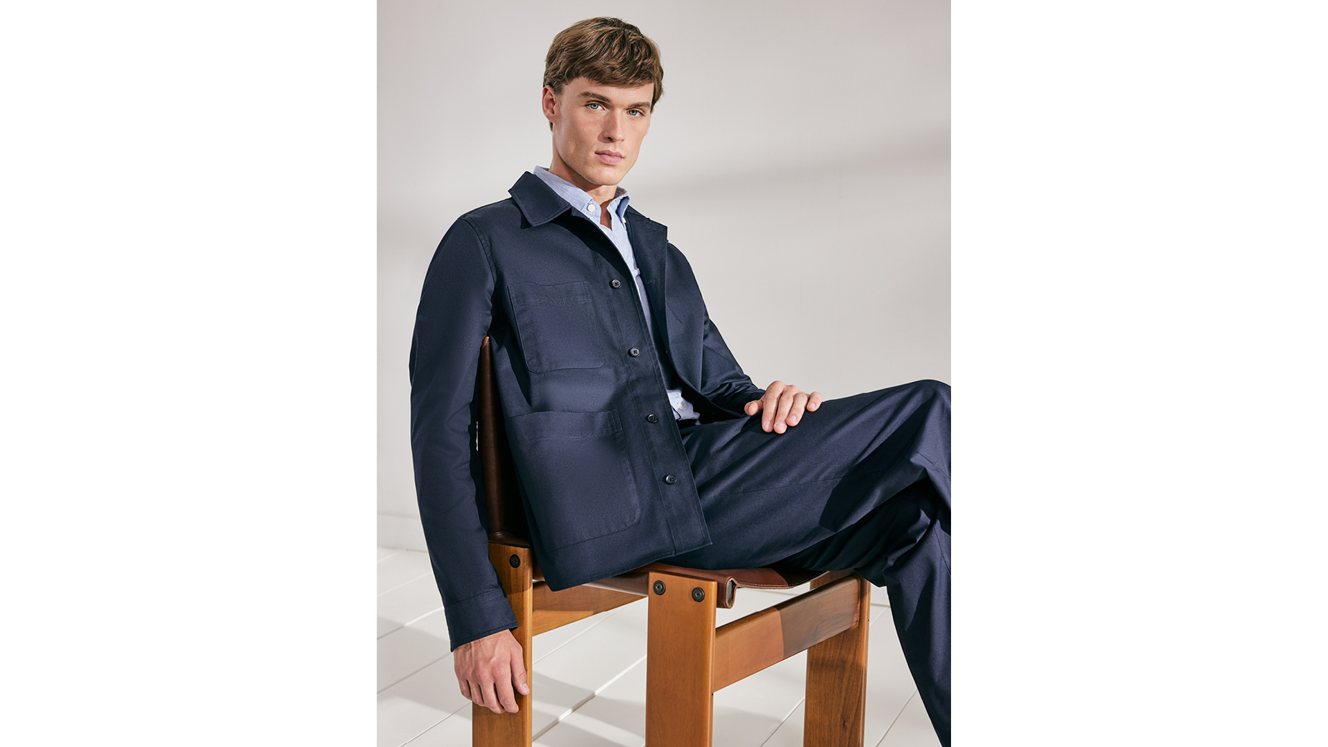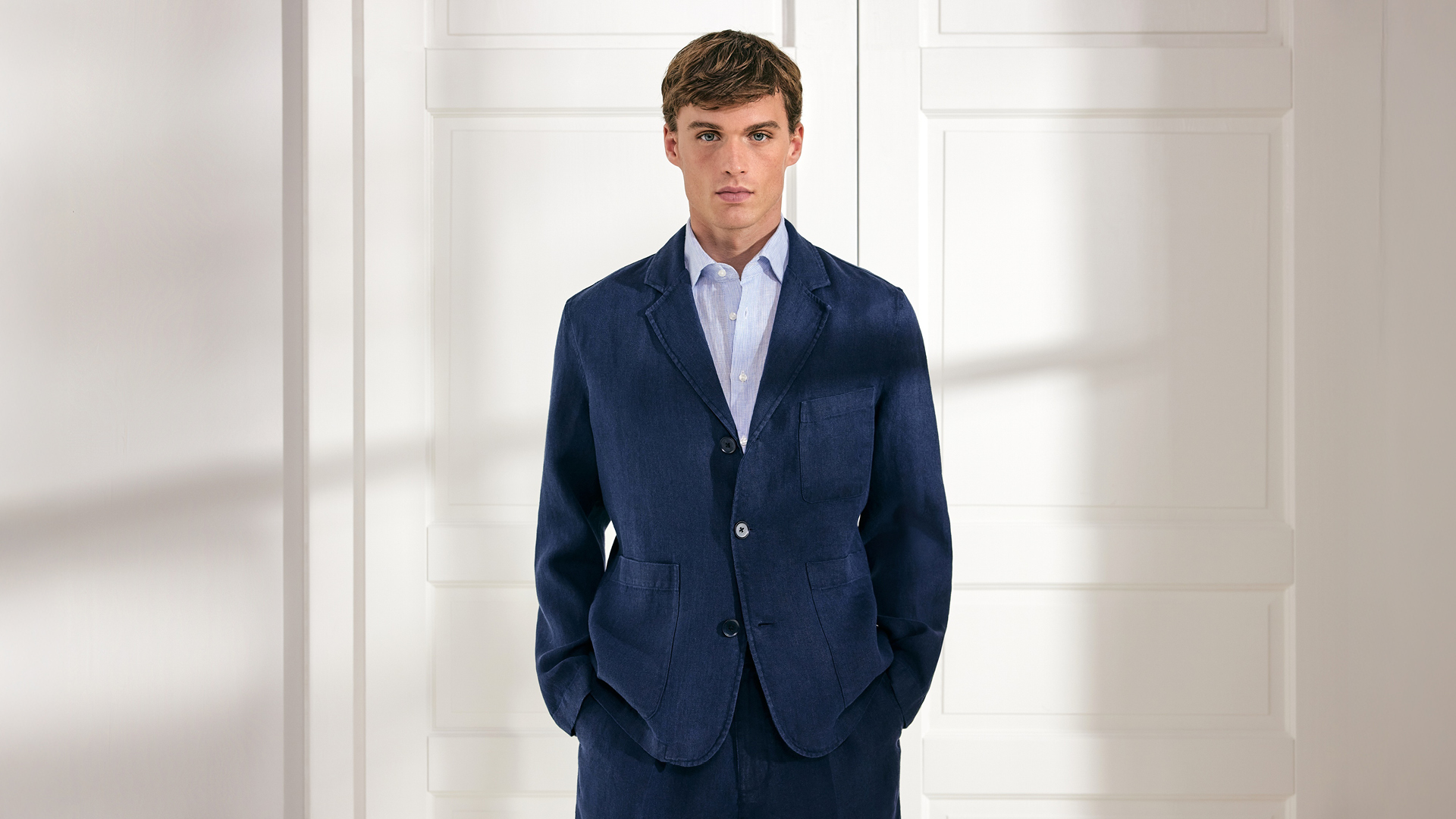 Soft gewaschene Hemden mit Button-down- oder Kentkragen bilden zusammen mit Resort-Shirts die thematische Essenz. Als harmonische Ergänzung dazu werden Overshirt-Varianten, Chinos und Bermudas aus Leinen und Cotton Twill angeboten. Abgerundet wird das Sortiment durch ein dekonstruiertes Sakko. Im Warenbild liegt der Schwerpunkt auf Oxfords, soften Twills, Blue-Denims, einer Cotton-Leinen Mischung und Seersucker. Streifen, feine Karos und Unis prägen das Gesamtbild und verleihen dem Casual-Segment stilistische Klarheit. Das arrondierende Strickprogramm wird durch leichten Merinostrick, Pima-Cotton und gecrêpte Baumwollqualitäten aufgemacht und durch sommerliche Leinenmischungen abgerundet. Hinzu kommen T-Shirts und Polos aus merzerisierter Baumwolle, technischer Cotton als Resort, feinkörniger Piqué und merzerisierter Jersey.