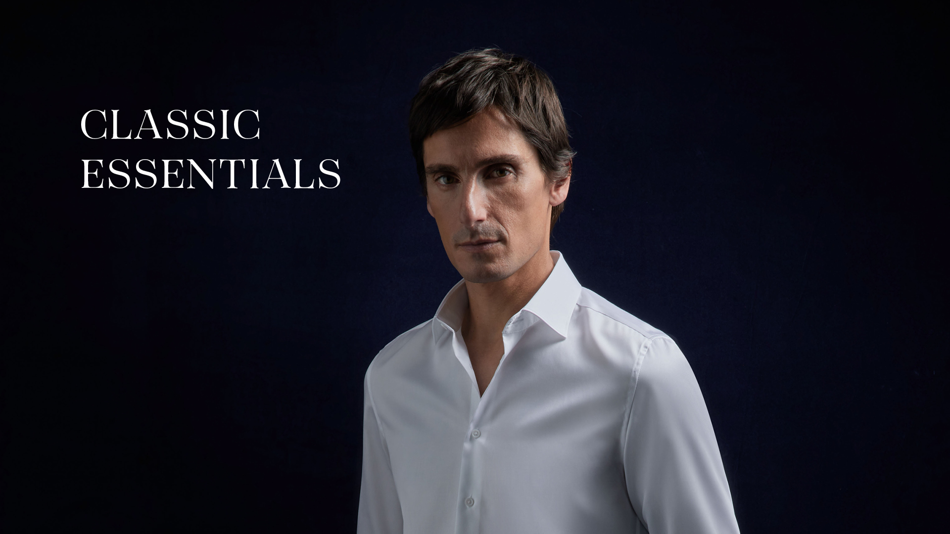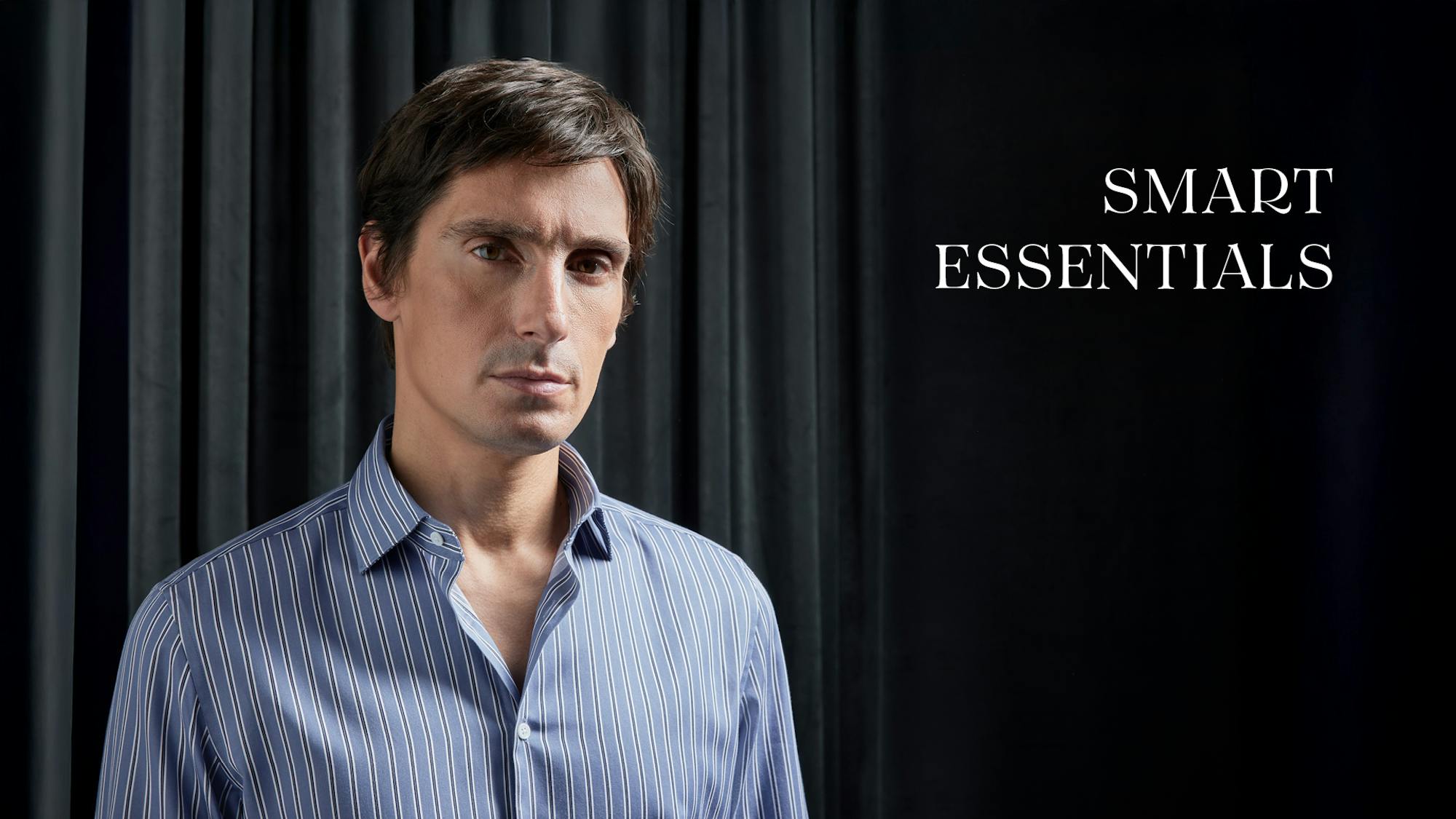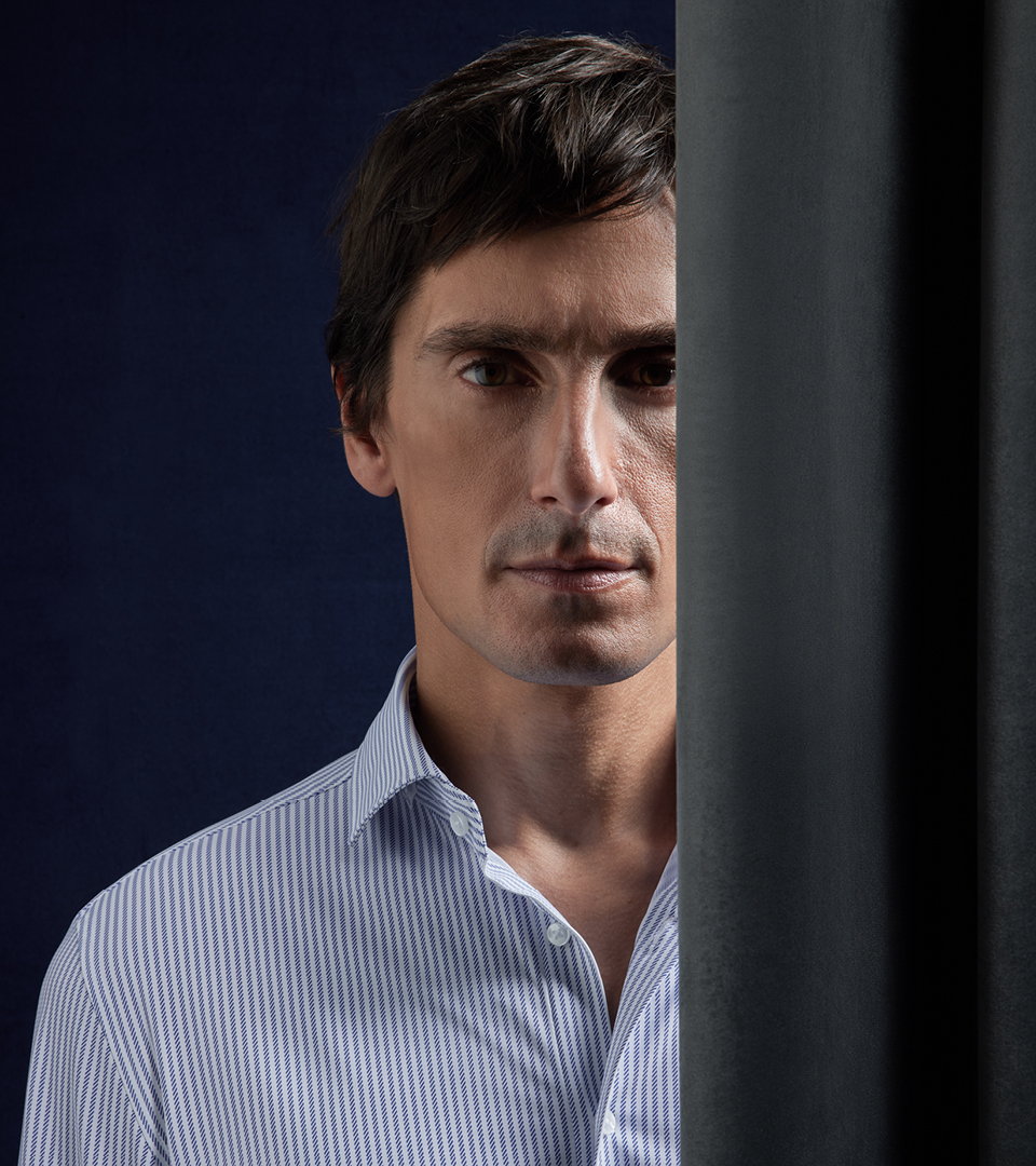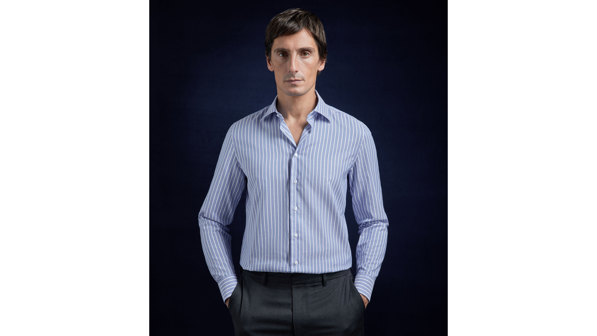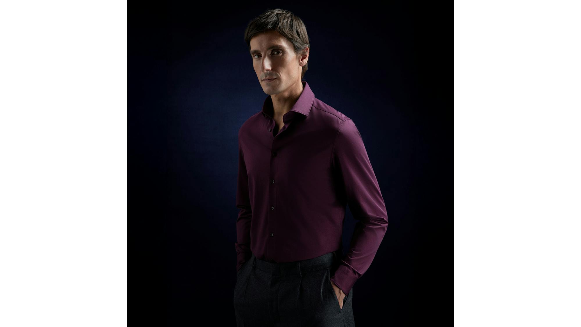 The focus is on plain fabrics, classic stripes and fine checks. In terms of materials, fine-thread cotton, densely woven yarns, elegant satin, three-dimensional structures and sophisticated weaves come together. Generous, finely cut collar shapes complement the variety of classic collars and create stylistic depth and variety.