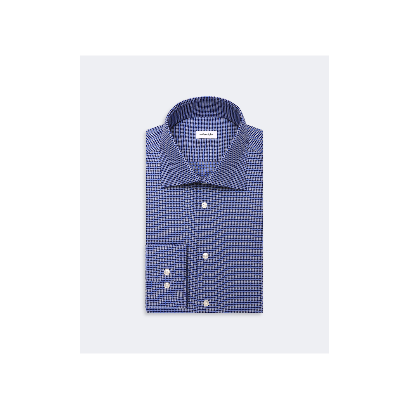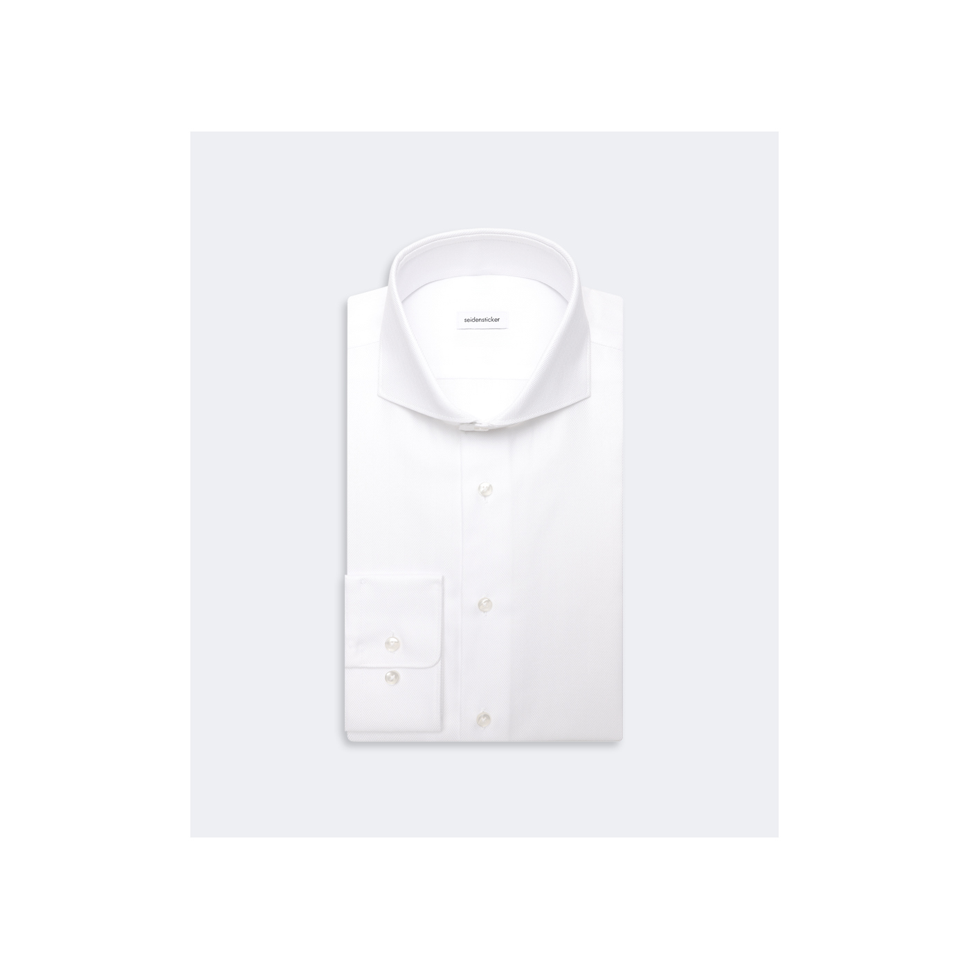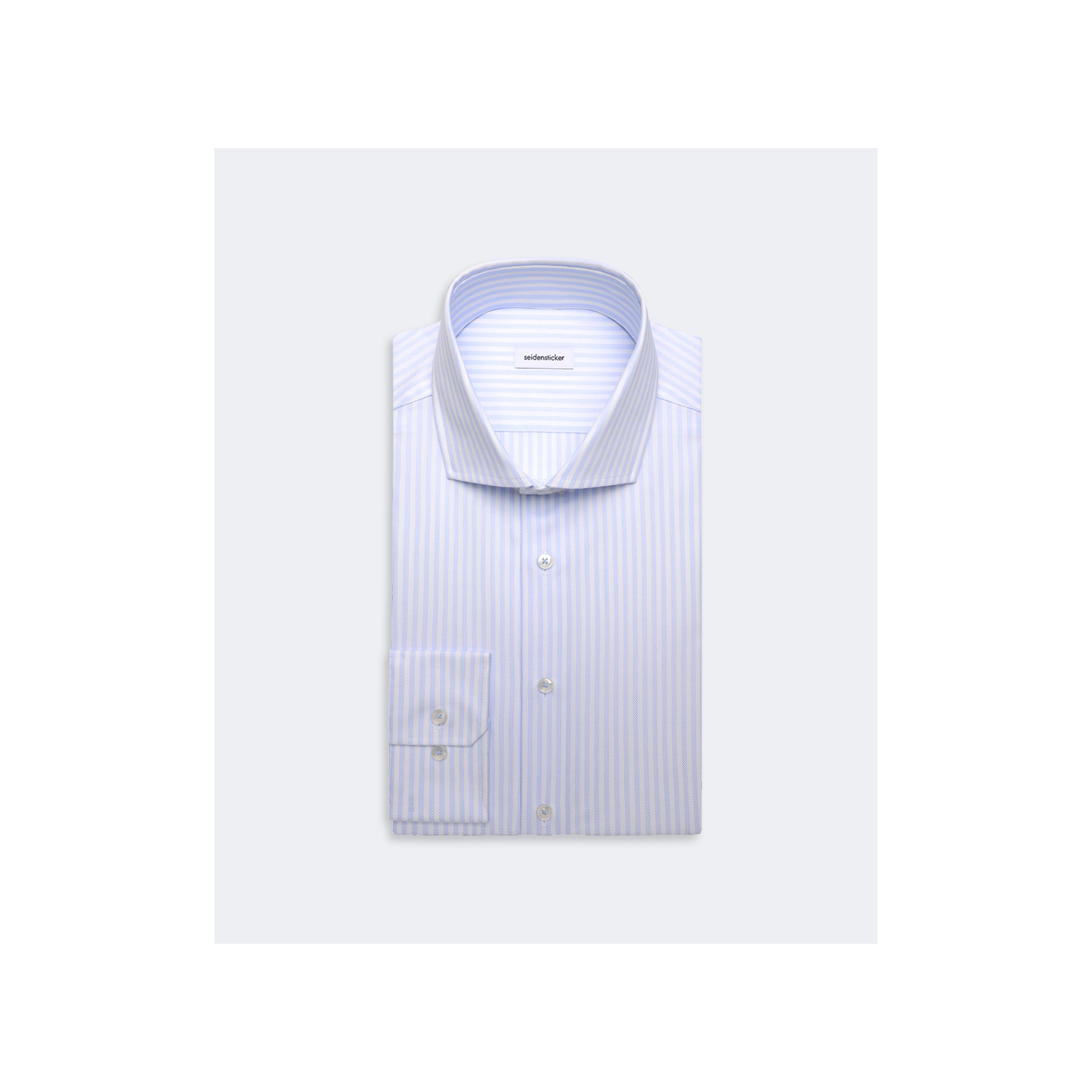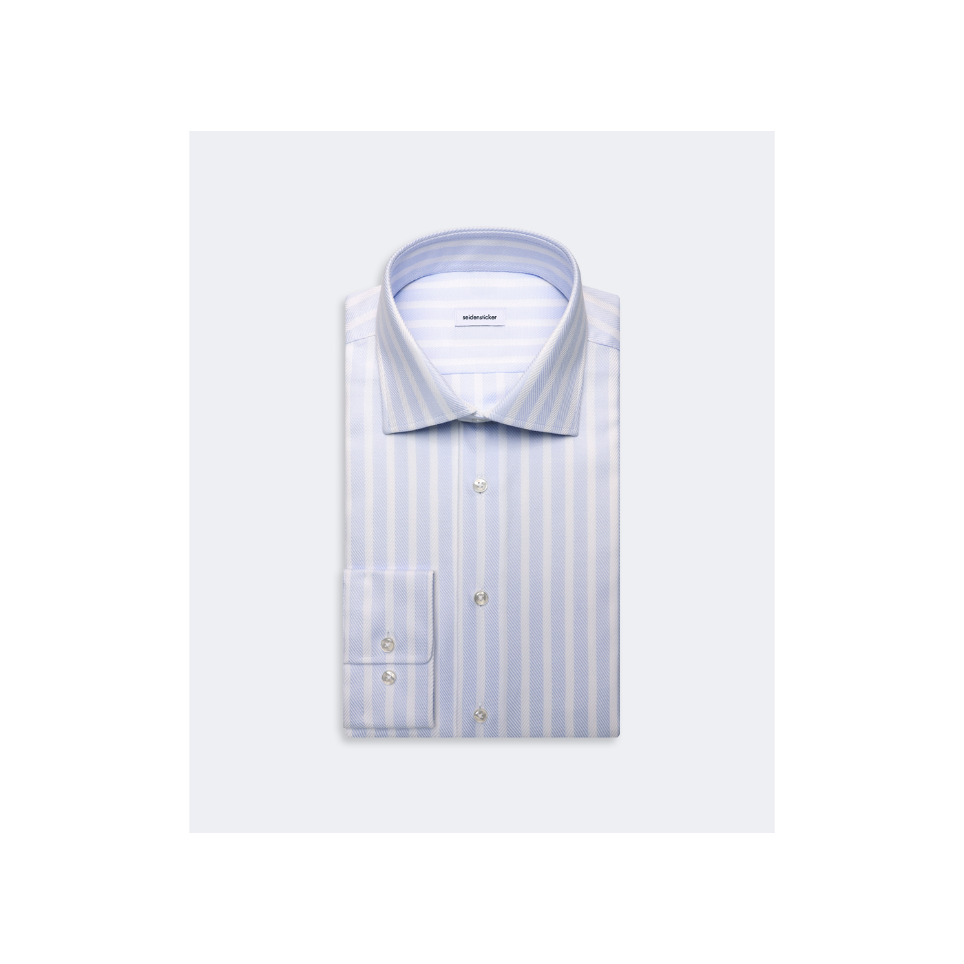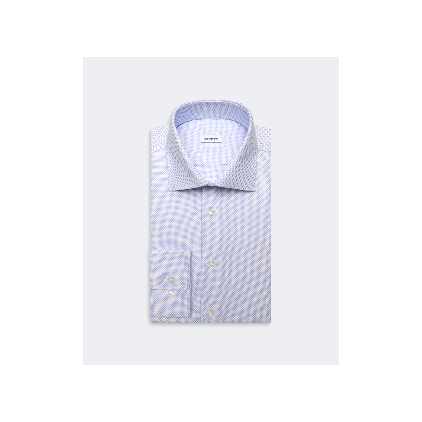 The focus is on plain fabrics, classic stripes and fine checks. In terms of materials, fine-thread cotton, densely woven yarns, elegant satin, three-dimensional structures and sophisticated weaves come together. Generous, finely cut collar shapes complement the variety of classic collars and create stylistic depth and variety.