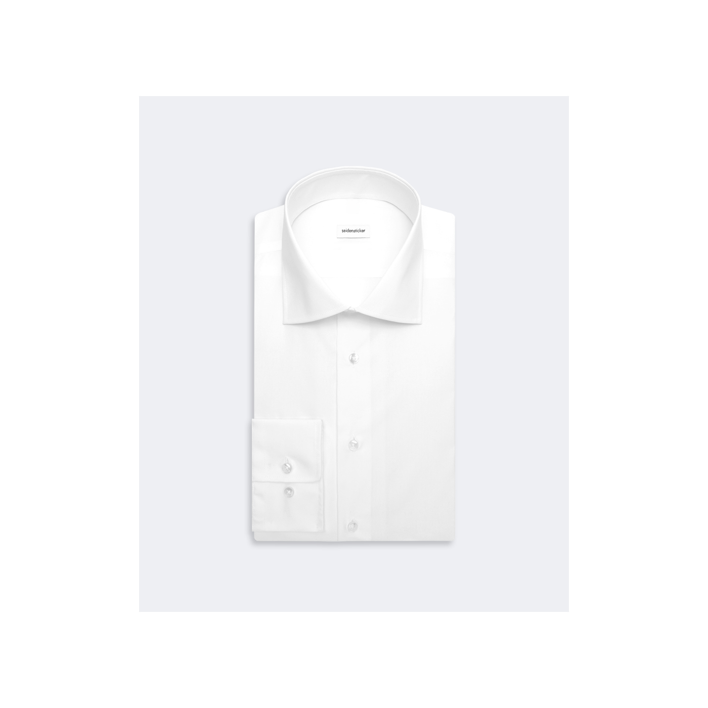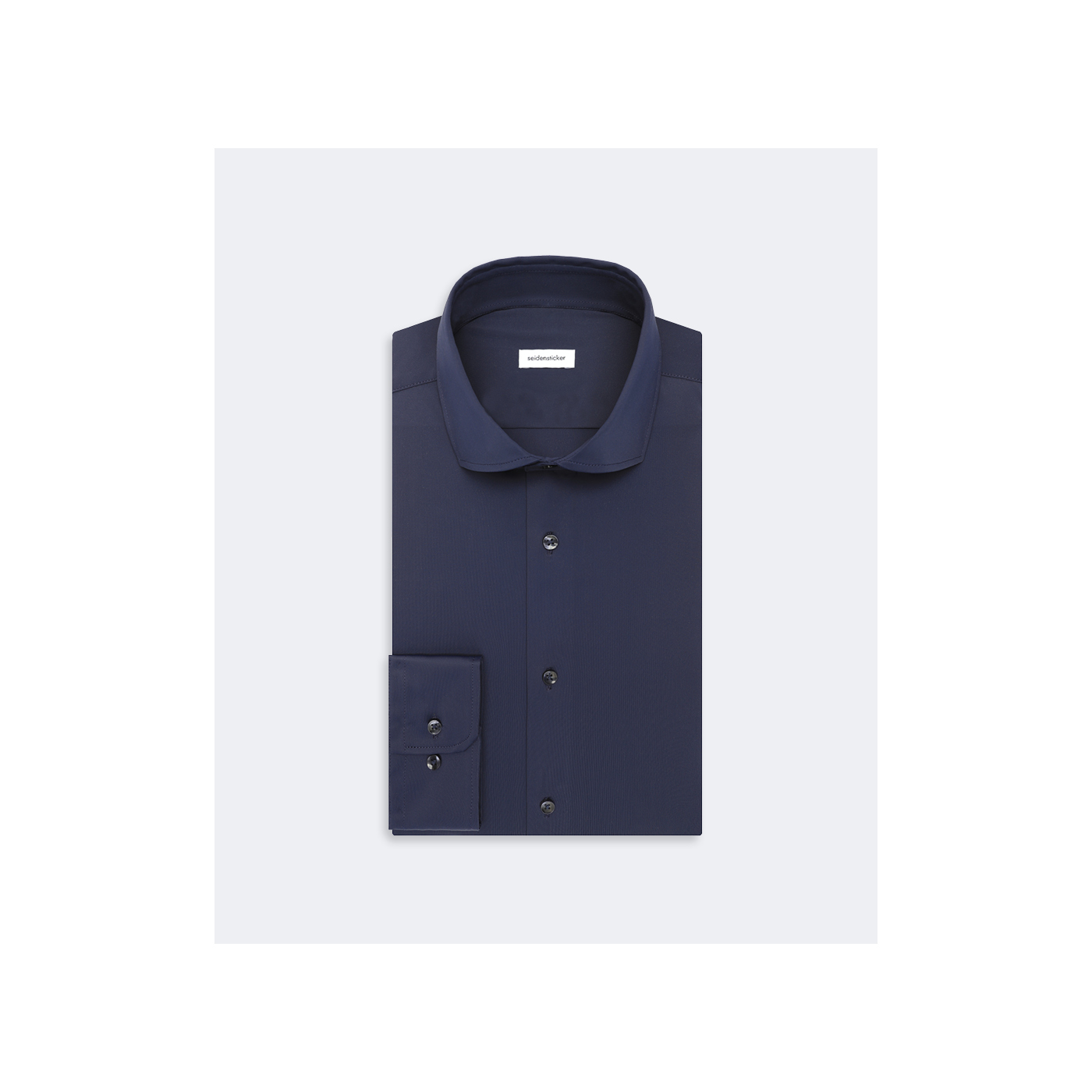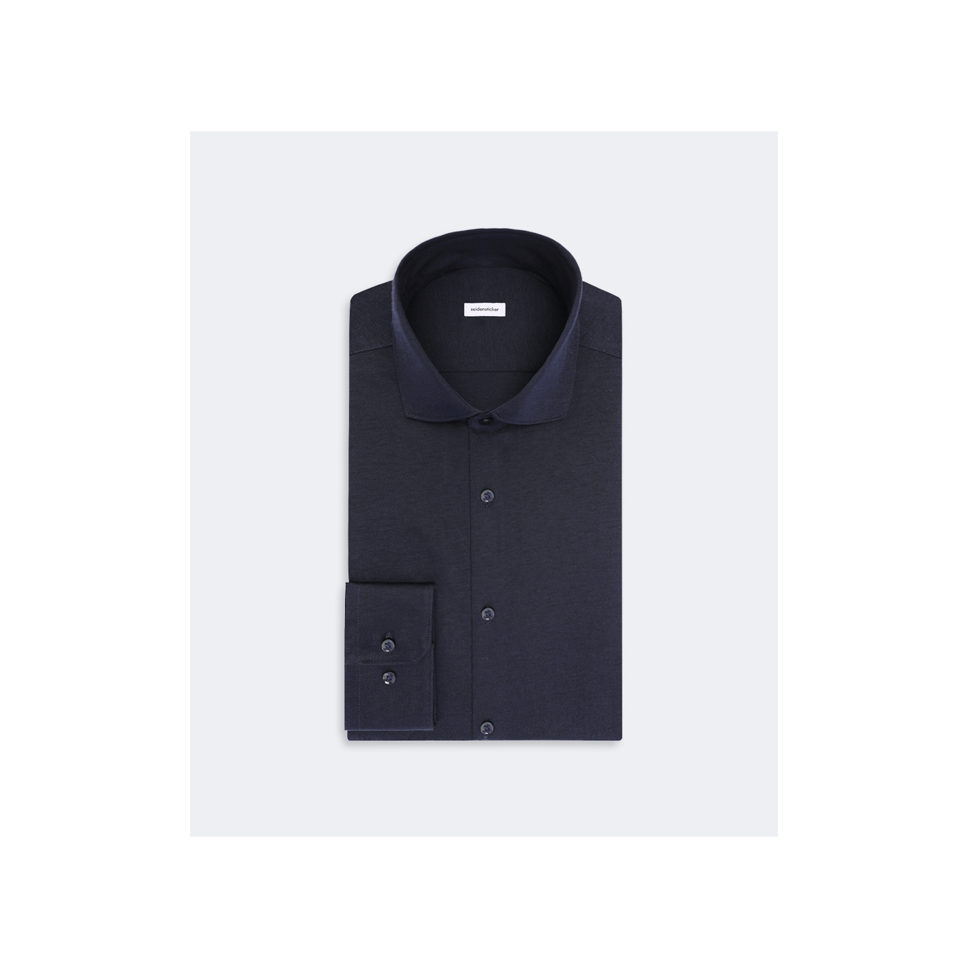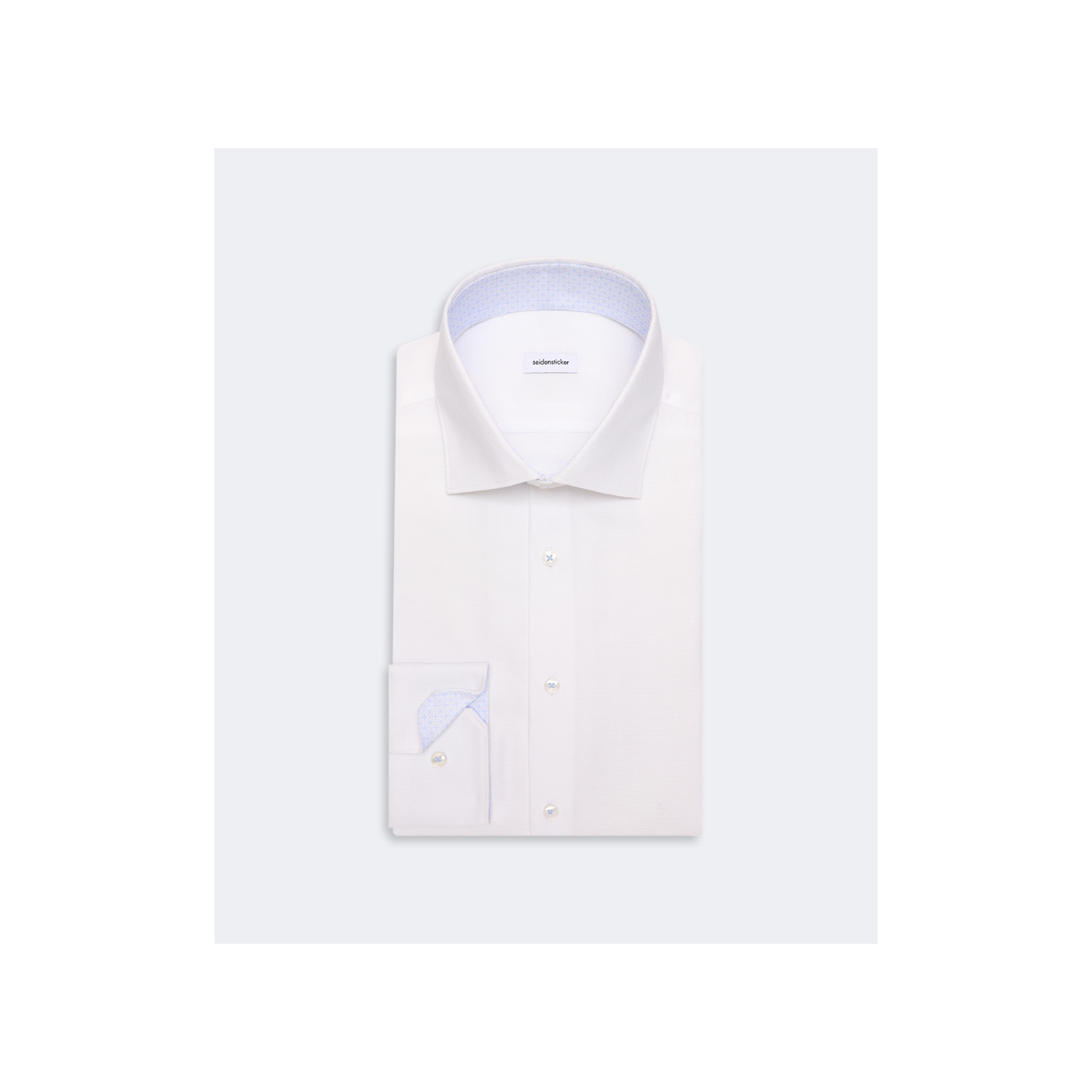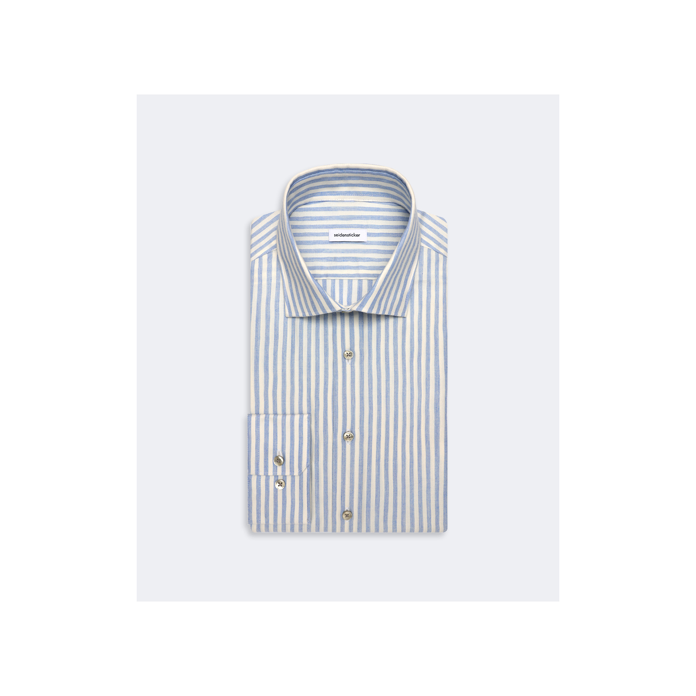 The focus is on plain fabrics, classic stripes and fine checks. In terms of materials, fine-thread cotton, densely woven yarns, elegant satin, three-dimensional structures and sophisticated weaves come together. Generous, finely cut collar shapes complement the variety of classic collars and create stylistic depth and variety.