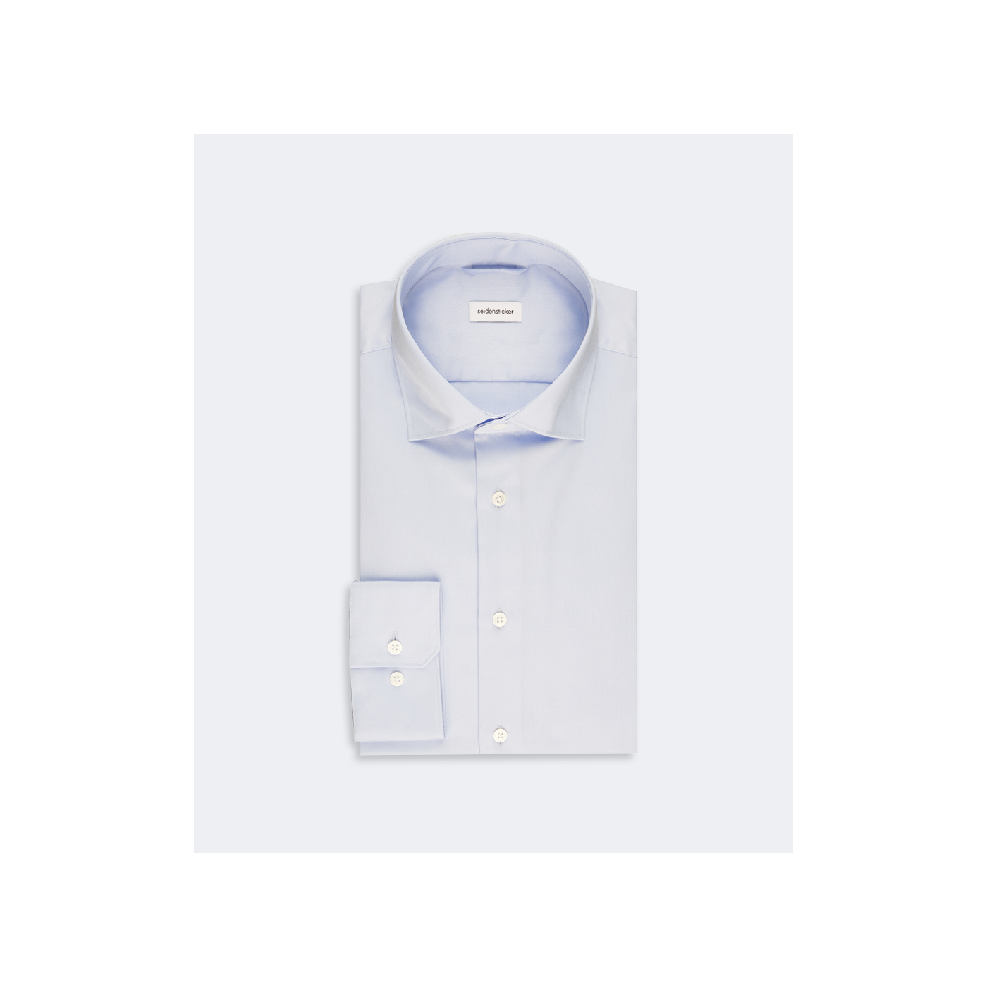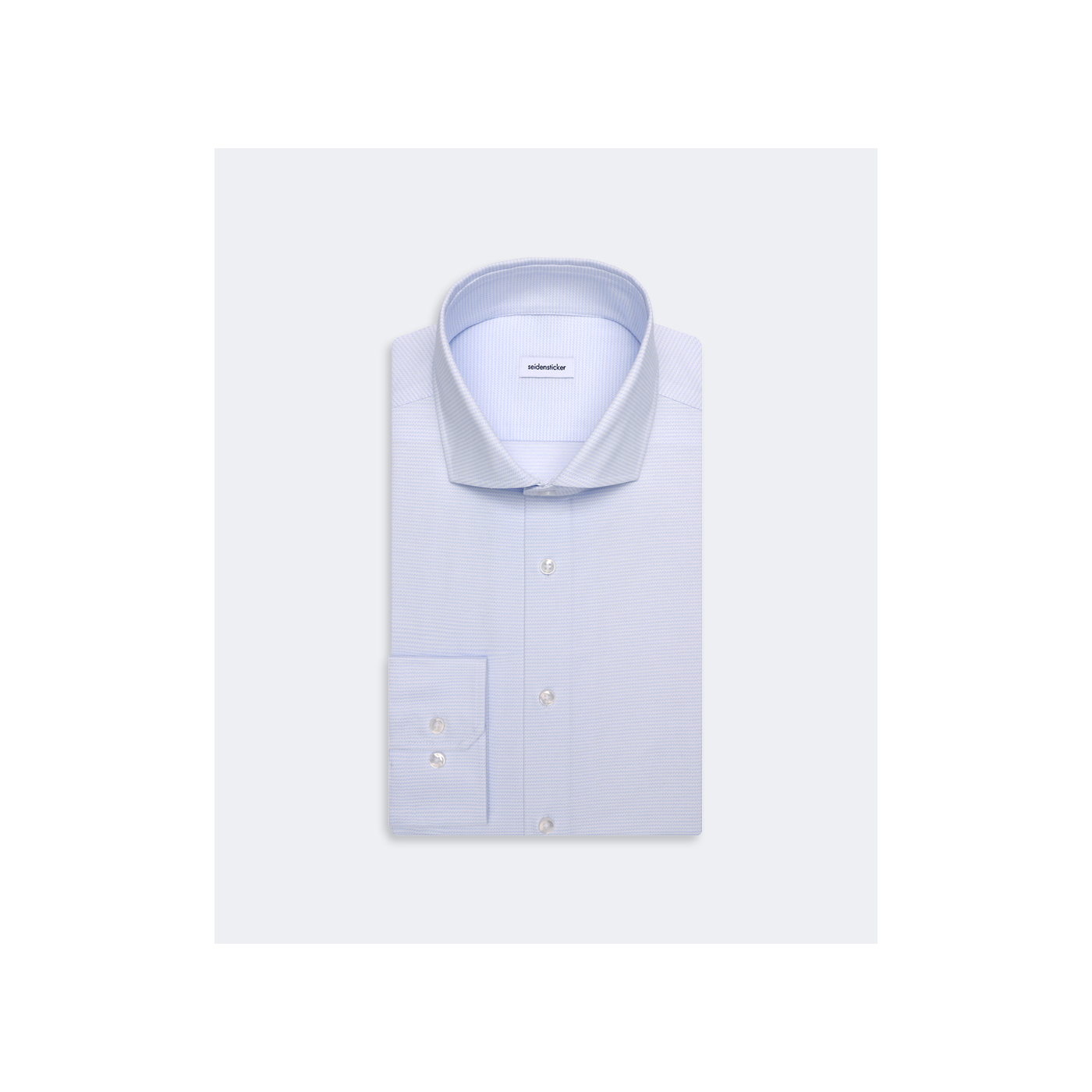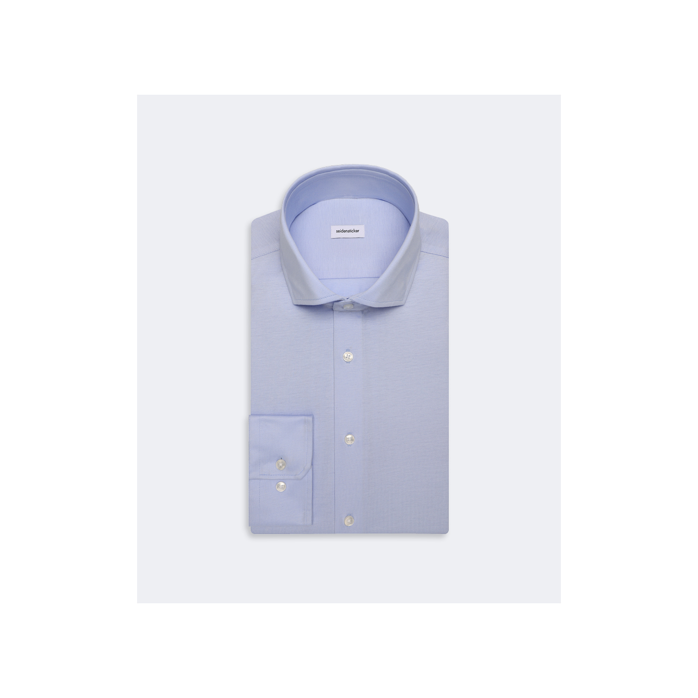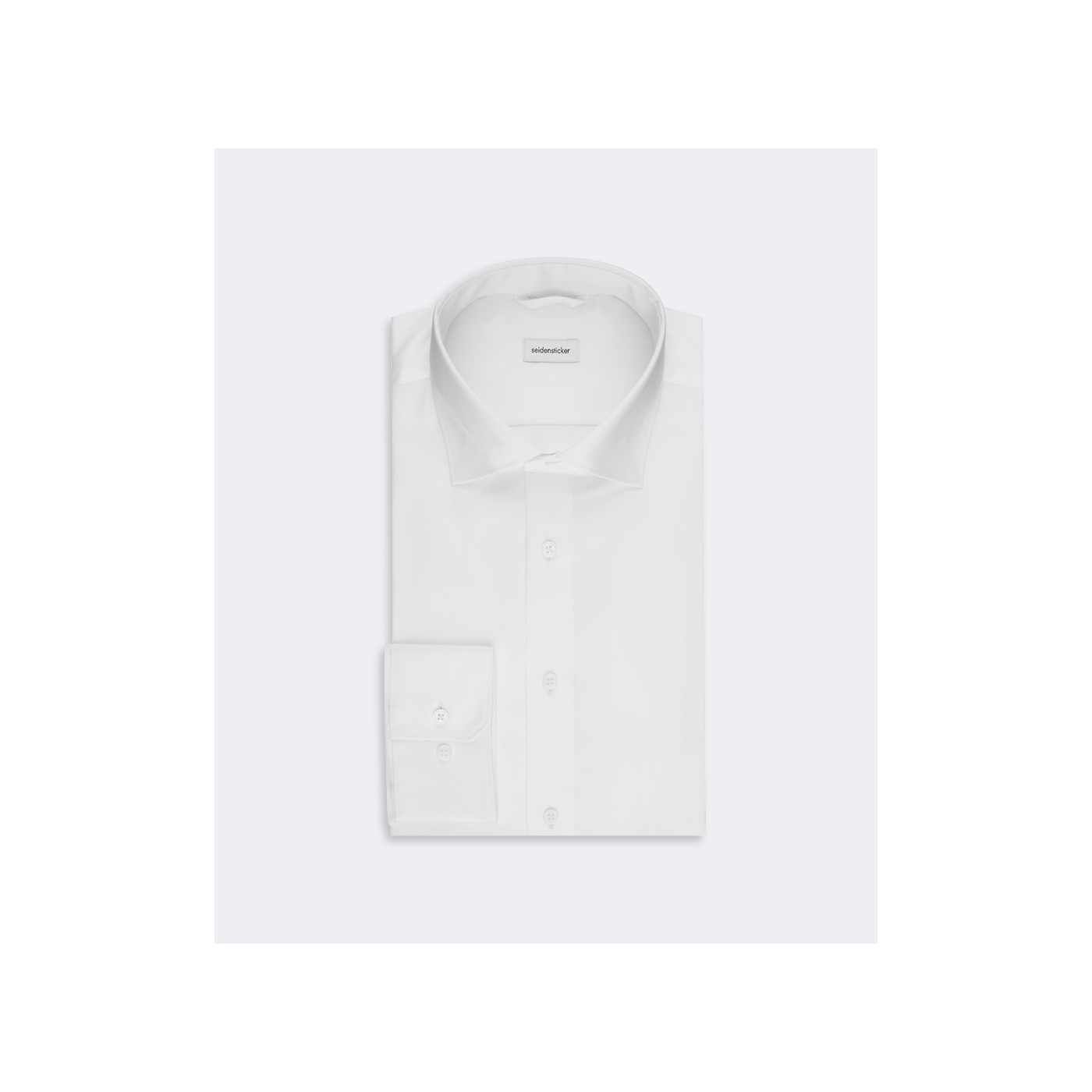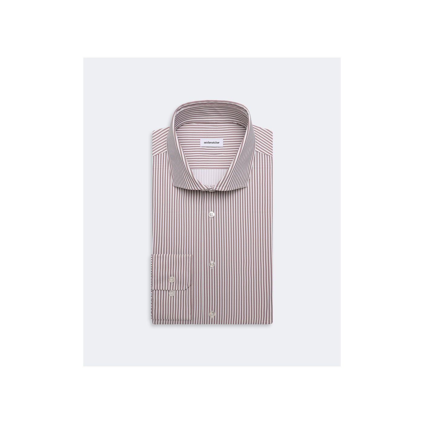 The focus is on plain fabrics, classic stripes and fine checks. In terms of materials, fine-thread cotton, densely woven yarns, elegant satin, three-dimensional structures and sophisticated weaves come together. Generous, finely cut collar shapes complement the variety of classic collars and create stylistic depth and variety.