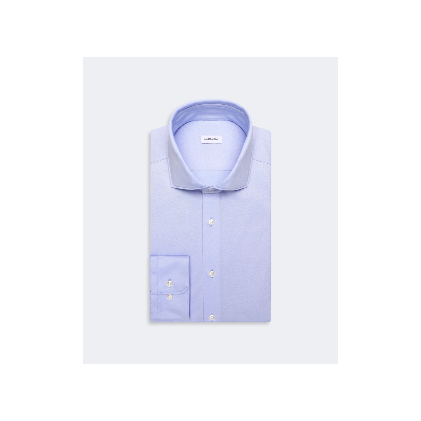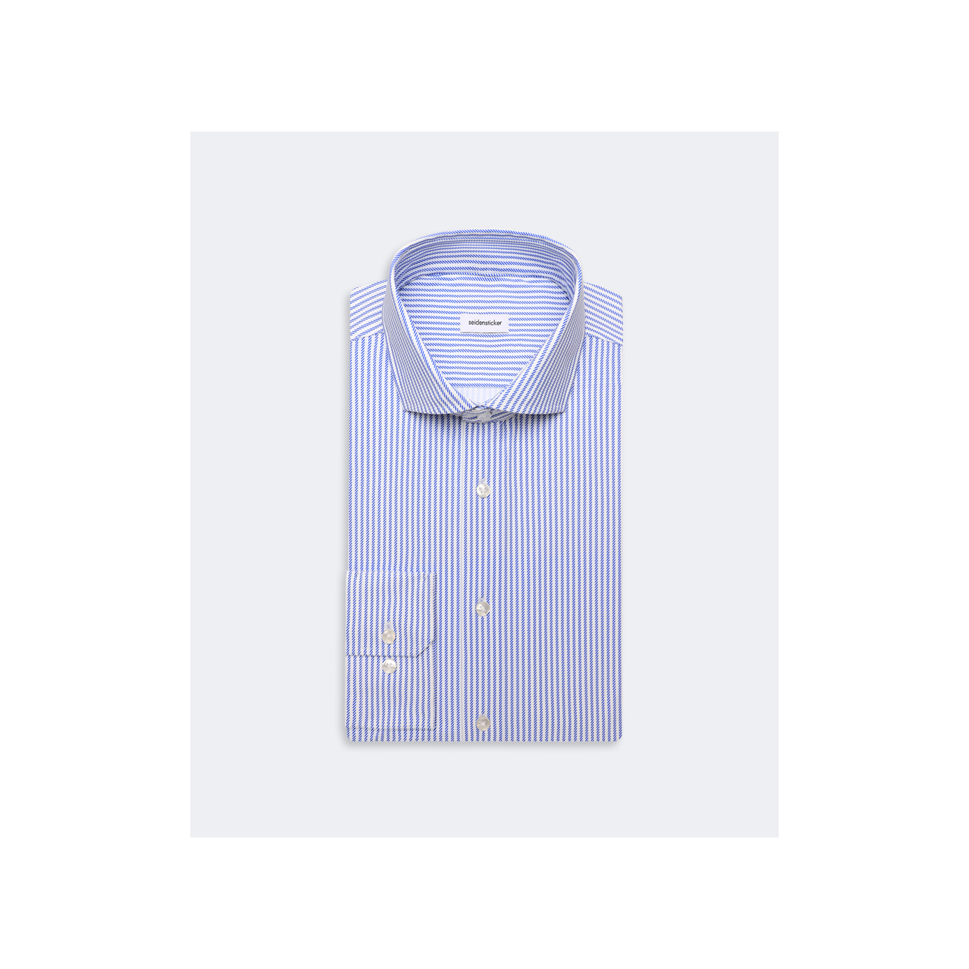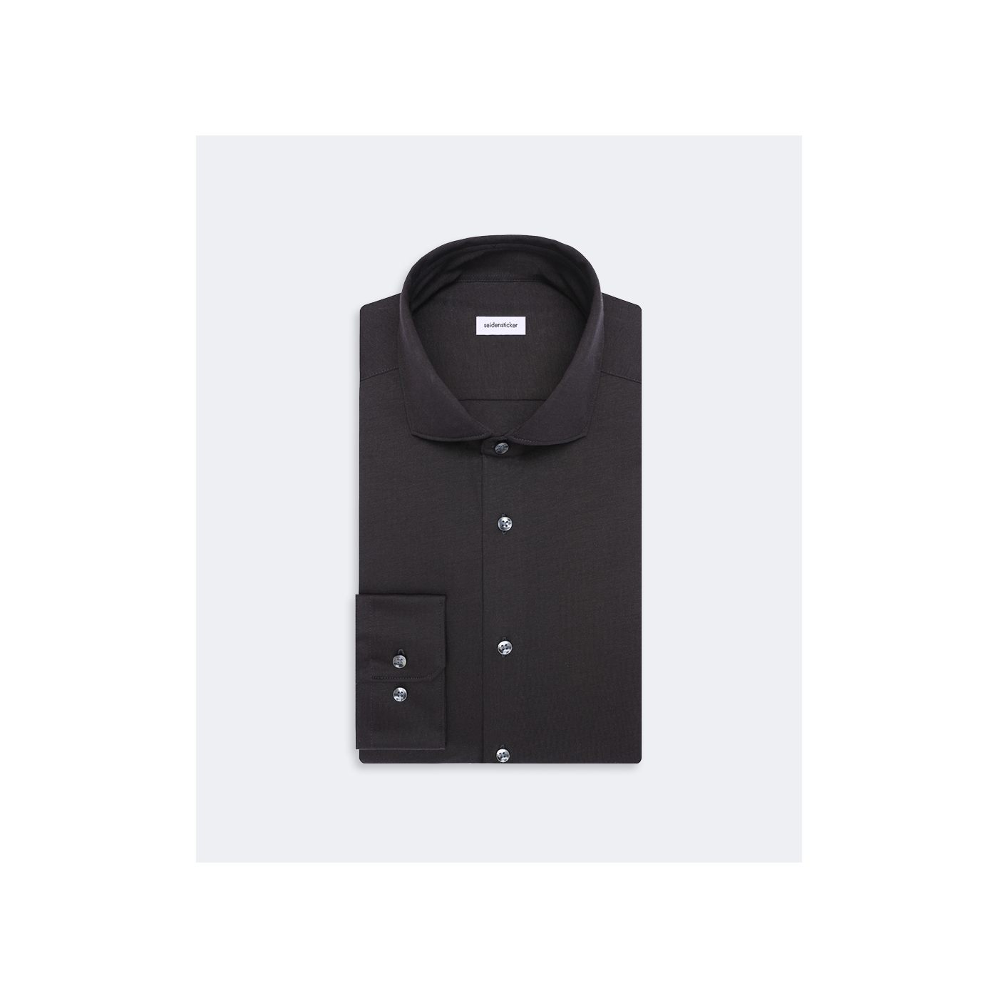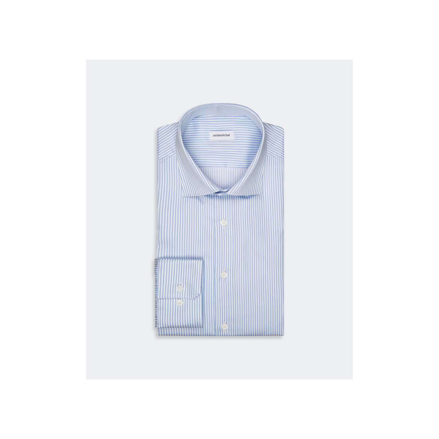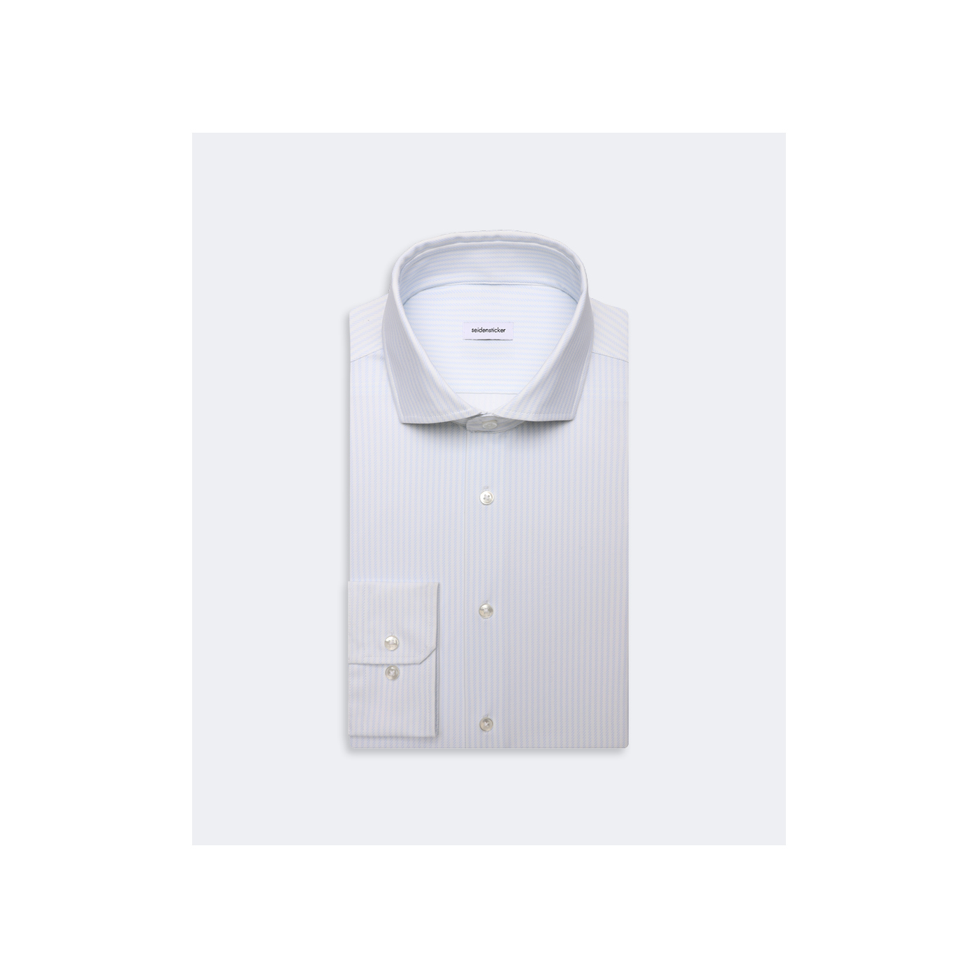 The focus is on plain fabrics, classic stripes and fine checks. In terms of materials, fine-thread cotton, densely woven yarns, elegant satin, three-dimensional structures and sophisticated weaves come together. Generous, finely cut collar shapes complement the variety of classic collars and create stylistic depth and variety.
