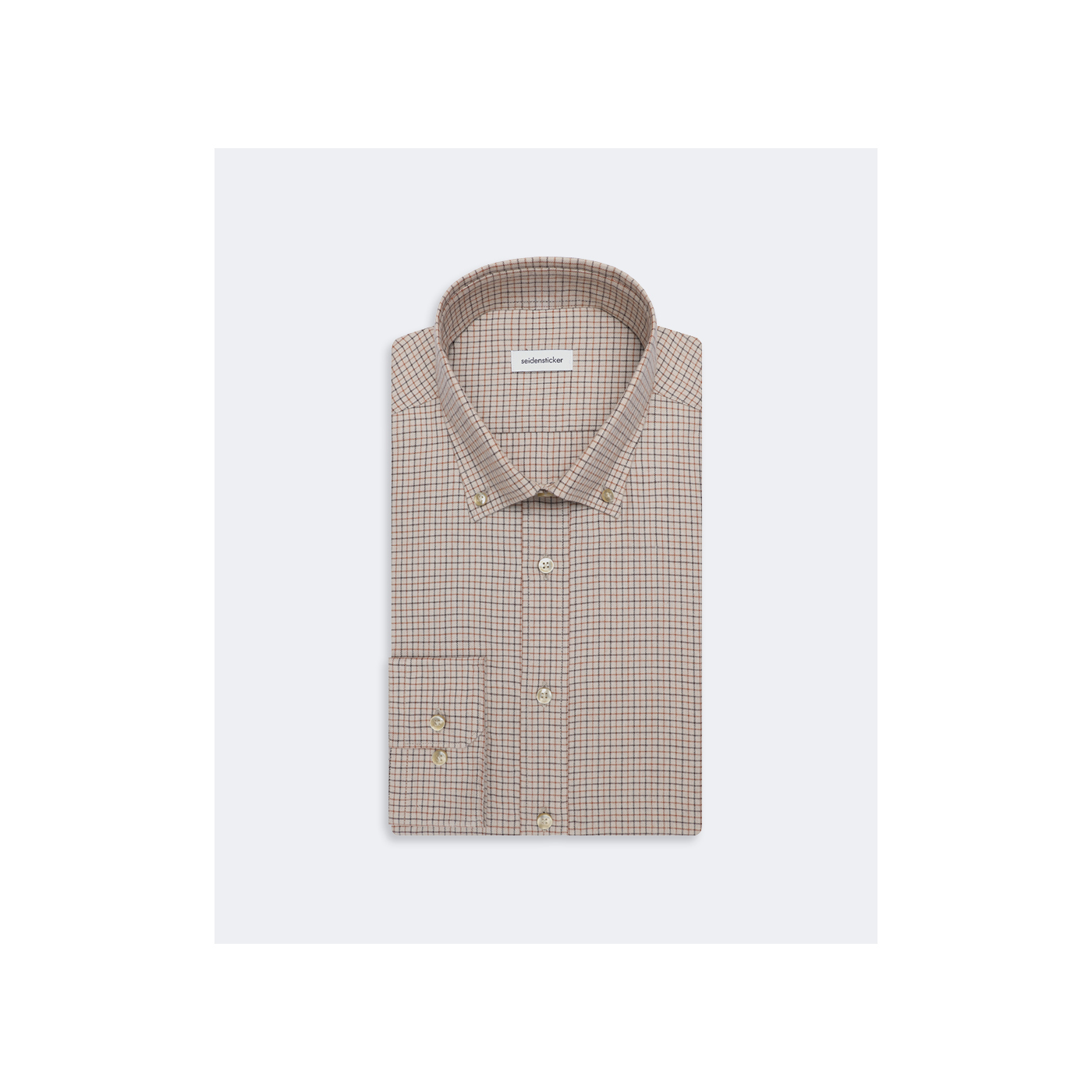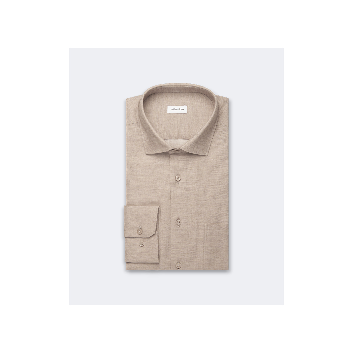 The winter collection is based on softly brushed flannels in classic designs and muted colours. In addition to tasteful plain fabrics, the focus is on a variety of check patterns, which are available in both micro and macro versions. The carefully curated flannel range impresses with its soft surfaces. The collaboration with traditional Italian weaver Thomas Mason adds extra appeal.