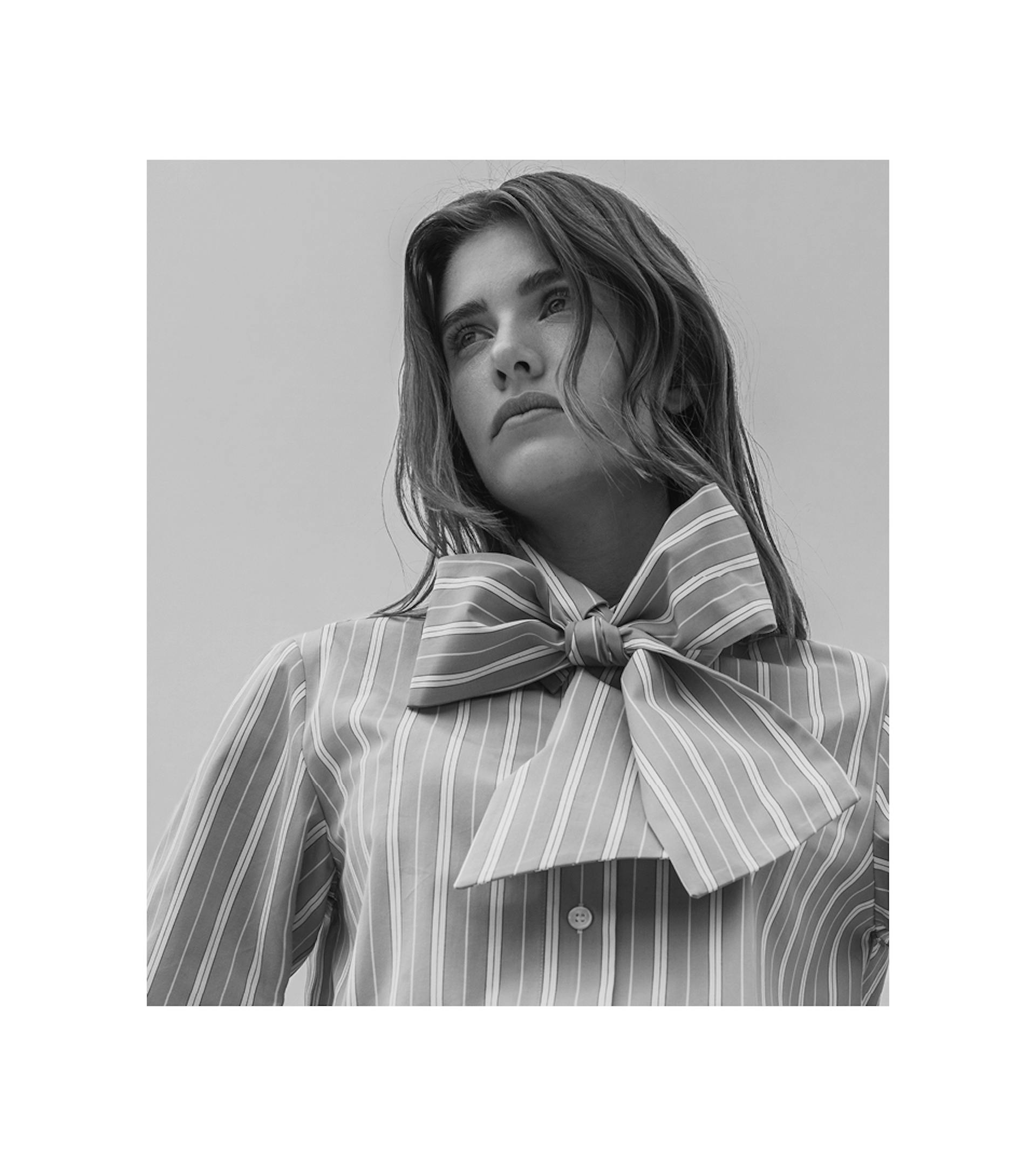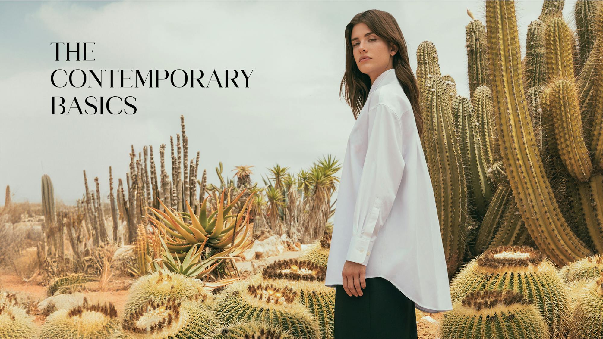 Im Fokus stehen anspruchsvolle, harmonisch in das Kollektionskonzept integrierte Styles. Die Modelle zeigen eine breite Varianz von körpernahen Silhouetten bis zu neuen Oversized Shapes und von modern interpretierter Klassik bis zu dezenter Verspieltheit. Im spannungsreich kuratierten Warenbild treffen matte und glänzende, fließende und stabile, glatte und strukturierte Qualitäten aufeinander. Feine Streifenabläufe und eine breite Uni-Palette kommen auf weich fallenden Fluids, modernen Twills und feinen Poplins optimal zur Geltung. Dreidimensionale Crêpe-Qualitäten, Denims, Bouclés und sommerliche Wollmischungen erweitern das Warenspektrum.